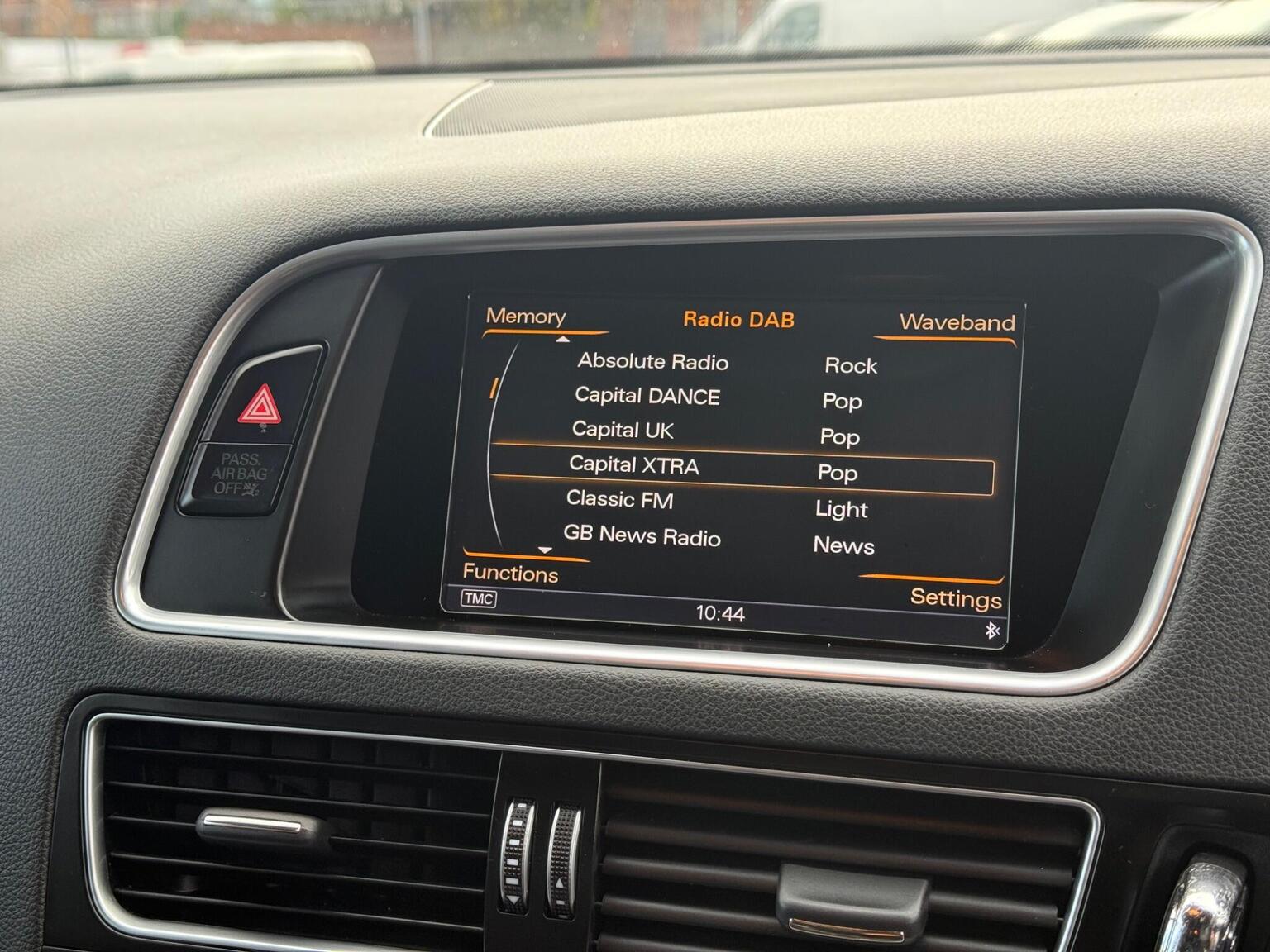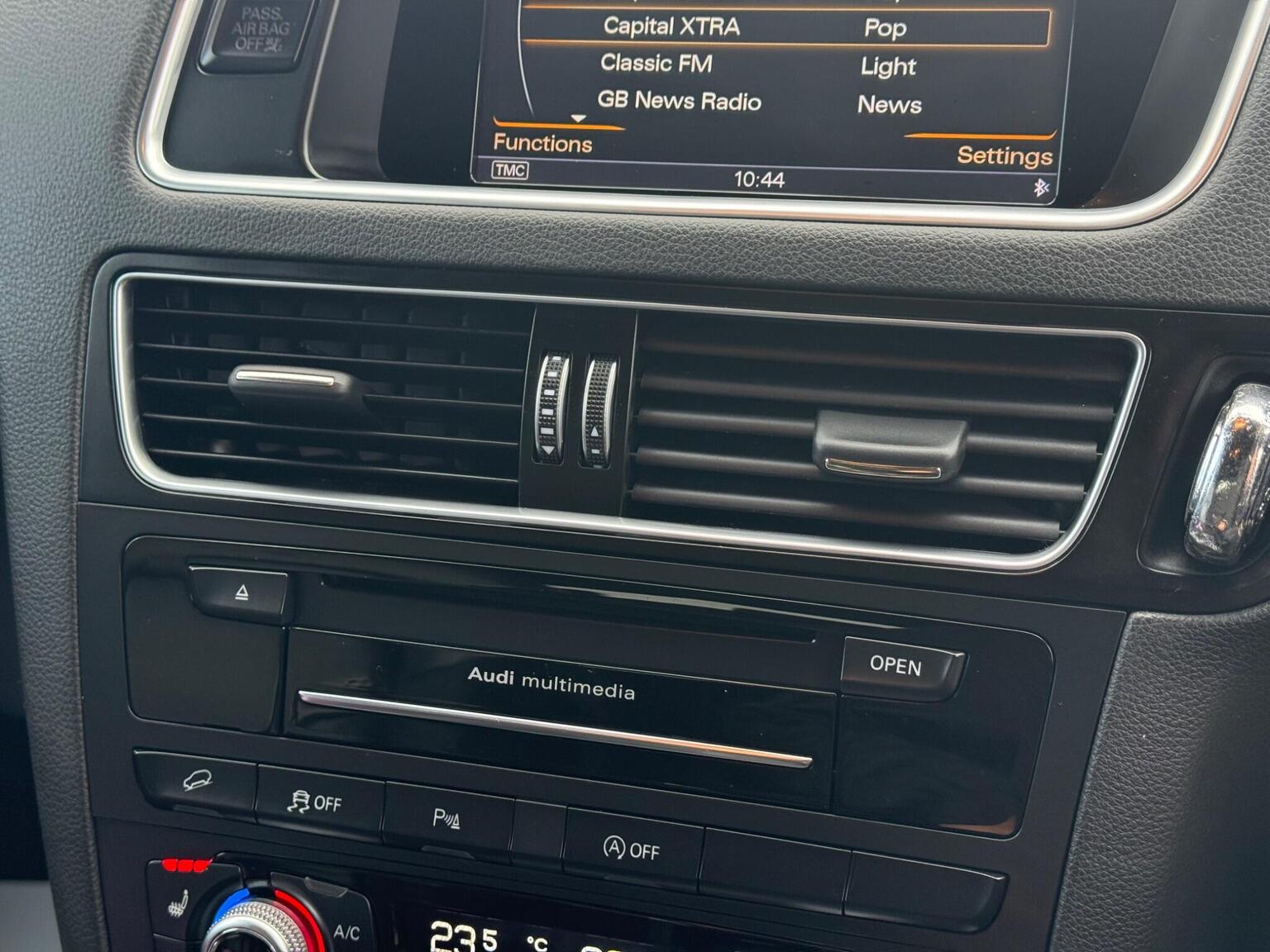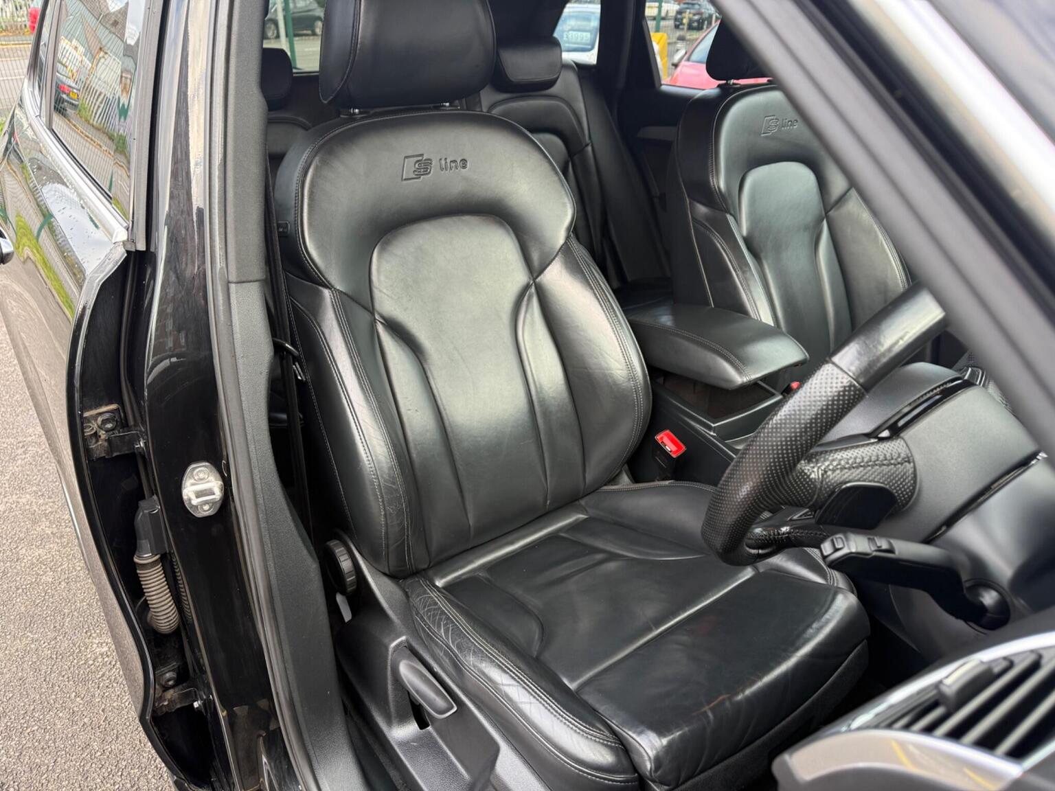 Car Jack, Chrome Tailgate Strip, Cloth Headlining in Black, Colour Drivers Information System - DIS, Concert Radio - MP3-CD Player, Cruise Control, Cup Holders - Centre Console, DAB Digital Radio, Deluxe 3-Zone Climate Control, Diffuser - Platinum Grey, Display Screen Colour - 7in TFT High Resolution and Split Screen Mode for Route Information, Door Handles - Chrome, Door Mirrors - Electrically Adjustable and Heated, Door or Boot Open Warning, Dynamic Route Guidance - TMC, EBD - Electronic Brakeforce Distribution, ESP - Electronic Stability Programme, Electric Windows - Front and Rear, Electrically Adjustable 4-Way Lumbar Support, Electromechanical Parking Brake, Electromechanical Power Steering, European Navigation Data, Exhaust Tailpipe - Chrome Trimmed - Flat-Bottom Design on Left Side, First Aid Kit, Front Centre Armrest, Front Fog Lights, Front Passenger Airbag Deactivation Switch, Front and Rear Floor Mats, Hard Drive - 40GB, Headlight Washers, Headlights - Coming-Leaving Home Function, Headlights - Light Sensor, Headlights - Xenon, Hill Descent Control, ISOFIX Child Seat Mounting for Front Passenger, ISOFIX Child Seat Preparation for Rear Seats with Top Tether, Inlays - Matt Brushed Aluminium, LED Daytime Running Lights, LED Rear Lights, Leather Package - Door Armrests, MMI Navigation Plus, Misfuelling Inhibition, Mobile Telephone Preparation - Bluetooth Interface, Outside Temperature Display, Pollen Filter, Power Operated Tailgate, Privacy Glass, Radiator Grille - S Line with Chrome Vertical Bars, Rear Parking Sensors, Rear Spoiler - Body Coloured, Remote Boot Release, Remote Central Locking, Rest Recommendation System, Roof Bars and Storage Bag, S Line Badges on Front Wings, S Line Side Skirts, S line Rear Diffuser, S line Sill Plates and Aluminium Loading Strip for the Boot, SD Card Reader x2, Seats - Front Height Adjustment, Seats - Front with S line Embossing, Seats - Split Folding Rear - 60-40, Seats - Sports, Single CD-DVD Player, Speakers x10, Steering Column - Rake and Reach Adjustment, Steering Wheel - Gear Shift Paddles, Steering Wheel - Multi-function, Steering Wheel - S Line 3-Spoke Leather, Styling Package - S line Exterior, TP Memo - Automatically Saves Traffic News, Tailgate - Lid Closing Assistance Unit, Tailgate - Programmable Angle for the Luggage Compartment Lid, Technology Package, Tool Kit and Car Jack, Towing Equipment - Preparation, Traction Control, Tyre Pressure Loss Indicator, Tyre Repair Kit, Warning Triangle, Window Surrounds - Aluminium, 12V Power Socket, 20GB Jukebox for Storing and Managing Music Files - WMA and MP3 Format, 20in Alloy Wheels - 5-Segment-Spoke Design, ABS - Anti-Lock Braking System, AMI - Audi Music Interface, Acoustic Windscreen, Air Conditioning - Deluxe Automatic at the Rear, Airbags - Driver, Airbags - Front Passenger, Airbags - Front Side, Alarm - Thatcham Category 1, Aluminium Roof Rails, Amplifier - 180 Watt, Amplifier - 6 Channel, Anti Theft Locking Wheel Bolts, Audi Parking System Plus, Audi Sound System, Auto-Dimming Rear-View Mirror, Automatic Headlight Range Adjustment, Automatic Wipers with Rain Sensor, Body Coloured Bumpers, Bumpers - S line Front